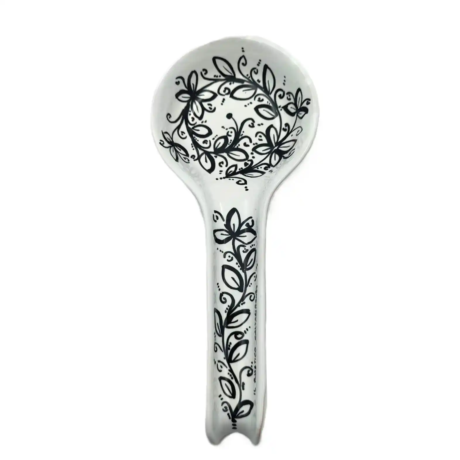 Poggia mestolo in ceramica di Caltagirone decoro Originale “Black Iris”.