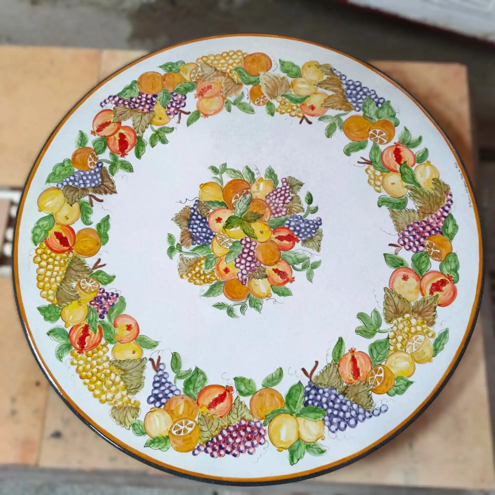 Tavolo in Pietra Lavica tondo decoro “Frutta”, tradizionale di Caltagirone.