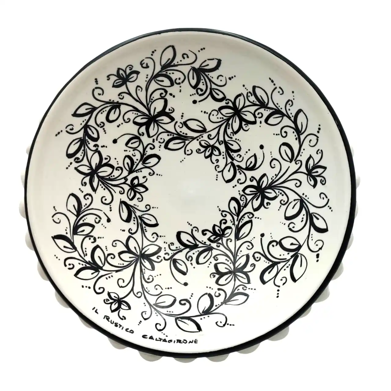Caltagirone Ceramic “Alzata” Pinecone Centerpiece “Black Iris”
