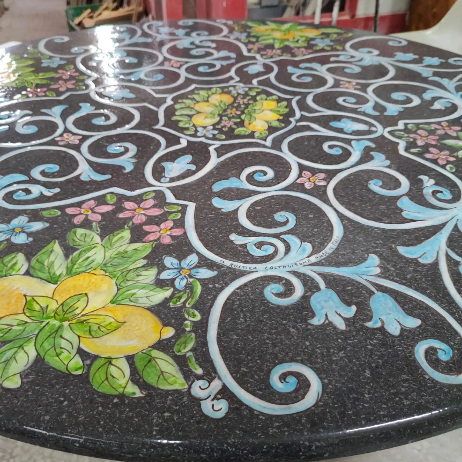 The hand-painted lava stone table, adorned with the traditional designs of Caltagirone ceramics, is a unique work of art that combines the beauty of Caltagirone’s ancient artisanal tradition with the durability and solidity of lava stone. Each table is carefully crafted by skilled artisans who apply the decorations by hand, ensuring high-quality craftsmanship.