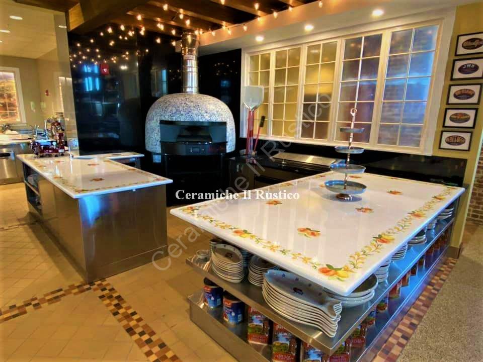 Le nostre Ceramiche, i Tavoli e i Top in Pietra Lavica per il Ristorante Casa Santo Stefano, in Florida. In America, abbiamo mescolato la Tradizione Artistica di Caltagirone con la Tradizione Culinaria Siciliana per far vivere l’Italia nel Mondo.